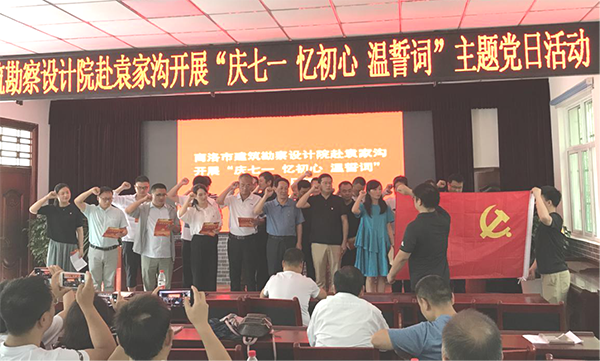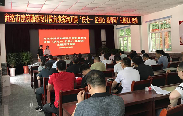 为庆祝中国共产党建党99周年,锤炼党员干部忠诚干净担当的政治品质,弘扬建功立业的奋斗精神,坚定信心,奋力开创各项工作新局面,市建筑设计院组织副科级以上干部和全体党员赴山阳县袁家沟党性教育基地,开展“庆七一、忆初心、温誓词”主题党日活动。