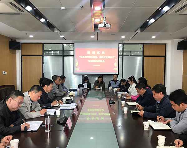 为了深入贯彻落实习近平总书记关于弘扬爱国奋斗精神的一系列重要指示,团结引领广大知识分子在新时代自觉弘扬爱国奋斗精神,树立牢固的家国情怀,凝聚报效祖国、奉献社会的强大力量,按照在全市知识分子中开展“弘扬爱国奋斗精神、建功立业新时代”活动安排部署会的要求,10月10日,市规划局党组书记、局长赵绪春带领局班子成员和规划系统各部门领导干部联合市设计院党总支开展“弘扬爱国奋斗精神、建功立业新时代”主题党日活动。市设计院院长杨建军,党总支书记、副院长王锁宏,院总工李晓红等领导参加了会议。