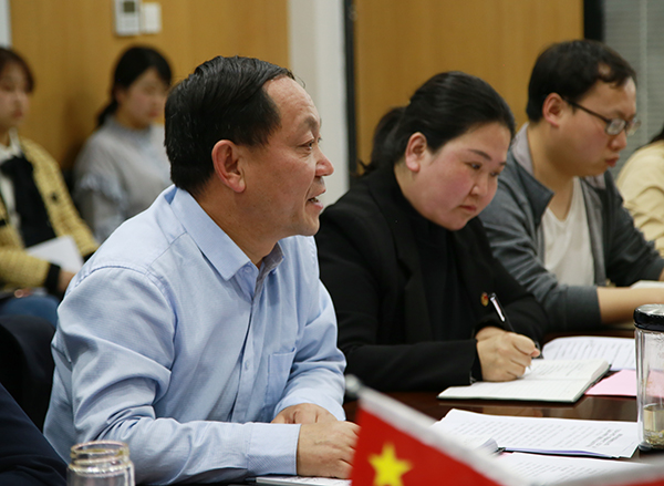 党办主任、第二支部书记白晓君带大家重温一百年前那段激情燃烧的岁月,通过学习加强青年对五四运动历史意义和时代价值的认识,引导广大青年在五四精神的激励下,决胜全面建成小康社会,夺取新时代中国特色社会主义伟大胜利,实现中华民族伟大复兴的中国梦而不懈奋斗。